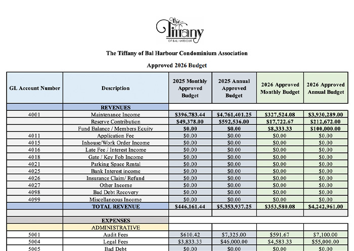 Ideally located on the oceanfront in the prestigious Bal Harbour community, The Tiffany offers a refined coastal lifestyle with full-service amenities designed for comfort, wellness, and relaxation. This elegant condominium provides residents with a serene beachfront setting combined with attentive services and thoughtfully designed common areas.
