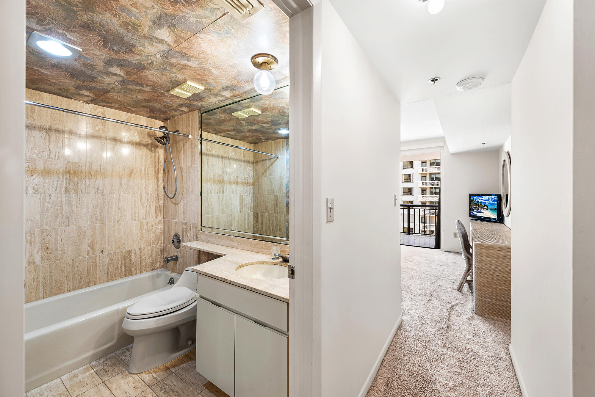 Opportunity to own at this oceanfront corner unit in the prestigious Tiffany's of Bal Harbour. With a large balcony offering unobstructed ocean views and the unique 03-line layout with NE exposure, this residence boasts 2 bedrooms, 2.5 bathrooms, and 2,018 square feet and comes with plans approved for a complete renovation adding a Den, moving the kitchen and converting the powder room to a full bathroom.Oceanfront Building and walking distance to the renowned Bal Harbour Shops, A+ rated schools, and places of worship. Enjoy a beautiful boardwalk right next to Haulover inlet and 5 minutes away to the Haulover park and marina. This full-service building ensures unparalleled comfort with onsite management for seamless living. Revel in the recently remodeled lobby and amenities, elevating your lifestyle to new heights.